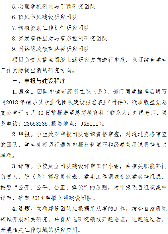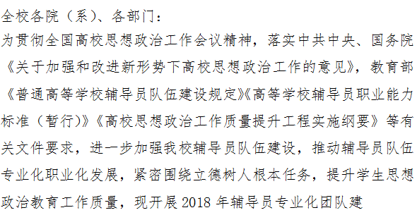 关于开展2018年辅导员专业化团队建设申报工作的通知