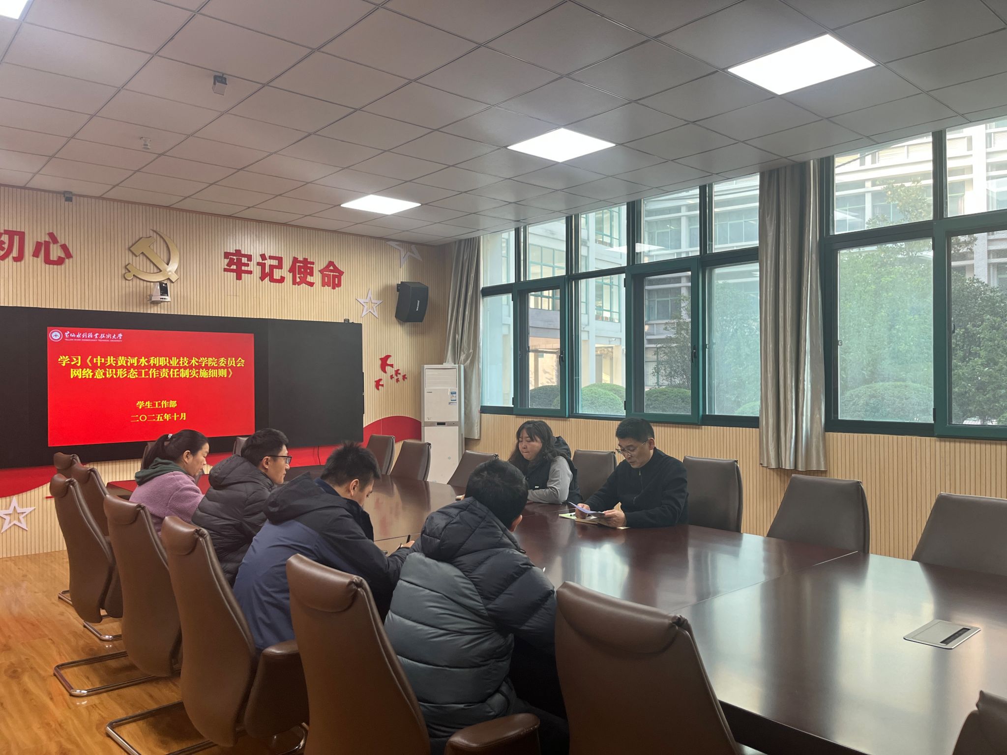 10月21日,学生工作部召开2025年下半年第三次政治理论学习专题会,此次会议聚焦《中共黄河水利职业技术学院委员会意识形态工作责任制实施细则》和《中共黄河水利职业技术学院委员会网络意识形态工作责任制实施细则》展开深入学习。会议由学生工作部部长商坤主持,部门在校人员全部参加,旨在进一步强化部门成员对意识形态工作的认识,提升责任意识与工作能力,为学生思想政治教育工作的开展筑牢根基。