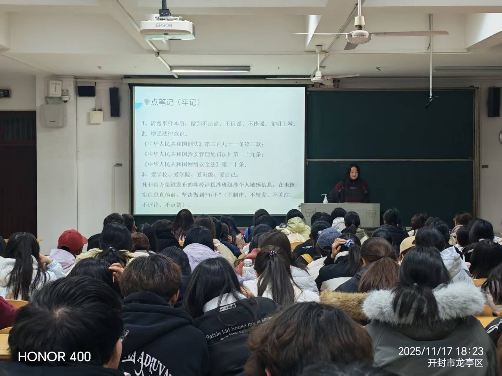 各学院参照11月思想政治教育主题班会指南,围绕“明辨网络信息,筑牢思想防线”主题,落实习近平总书记关于网络安全和信息化工作的重要指示。组织学生学习《中华人民共和国刑法》《中华人民共和国治安管理处罚法》《中华人民共和国网络安全法》等相关条款,深入剖析案例中当事人的错误行为及严重后果,反思信息辨别、责任意识、法治观念等方面问题,引导学生汲取教训,规范网络行为。