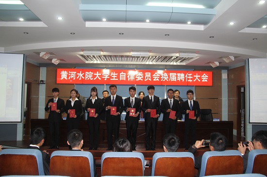 本届大学生自律委员会学生干部聘选,经过个人申报、公开竞聘、组织考察、征求意见、校内公示五个阶段,共选出学生干部290余名。学生处副处长王国英宣读了《关于对大学生自律委员会学生干部聘任的决定》,与会领导和老师为新当选的学生干部颁发了聘书,并为上一届优秀学生干部颁发了纪念品。