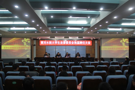 111日下午,我校第十届大学生自律委员会学生干部换届聘任大会在3号实训楼学术报告厅召开。学生处处长谷献晖、副处长王国英、团委副书记范龙出席大会,校自律会学生干部及各院系学生代表共220余人参加了大会。会议由学生处学生管理科科长兼大学生自律委员会秘书长柴杉主持。