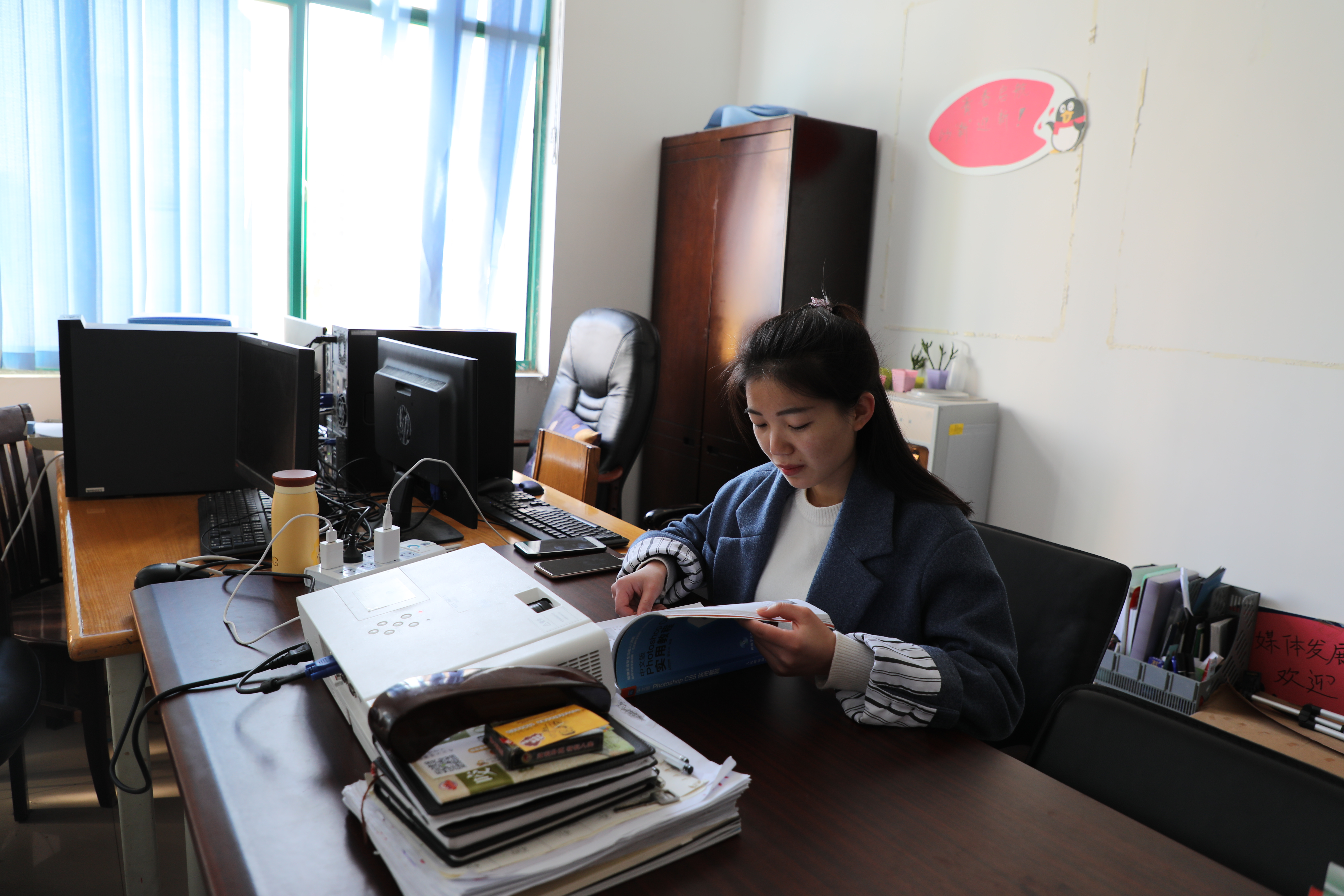 所有成绩都源于她强烈的责任感,每次学校的重大活动,总能看到她穿梭于各种重大活动的现场,操控者各种新奇的设备,续写着校园的春夏秋冬,她和她的团队用相机记录黄校的一年四季,将最燃爆的活动现场全部展现给大家,她用最认真严谨的态度对待每一份稿件,永远奋斗在最前线。因为她是学生记者,为了保证新闻的时效性,当天的活动一定要当天报道,为了文章能够及时推送,她中午一定要改完文章有时连饭也忘了吃,有时为了当天的新闻及时在新媒体平台上发布,她一定要赶在晚上12点之前做好推送,当她回到宿舍时,宿舍已经锁门了,渐渐地,宿管阿姨已经熟识了这个经常“晚归”的女孩。教室、办公室和宿舍,三点一线成为了她的工作日常。