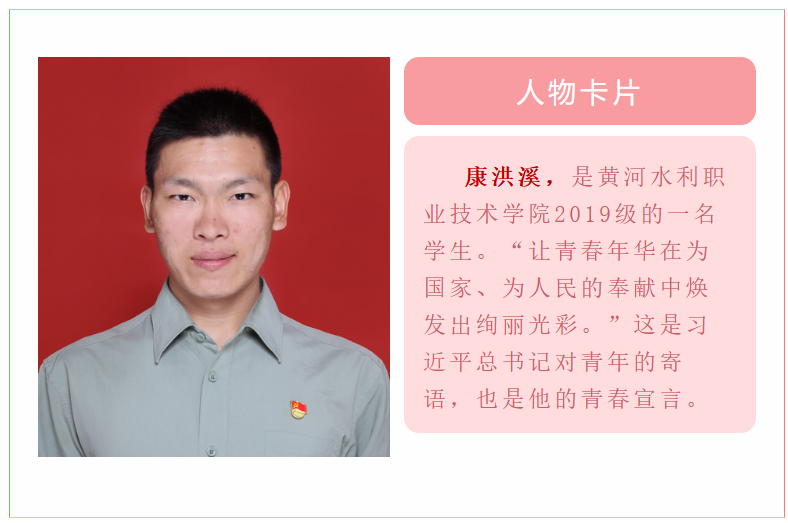 前段时间,我校开展了最美大学生宣传推介活动,评选出10名校级最美大学生,现已公示完毕。从即日起,将陆续在“黄河水利职业技术学院学生处”对这10名学生的事迹进行展播。接下来,我们一起看看今天这位同学的事迹吧!