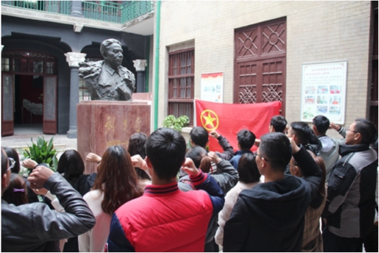 参观期间,讲解员为学生们讲解了刘少奇同志的生平事迹、著作选登及图片资料等相关内容。刘少奇同志是新中国的伟大缔造者之一,是中国共产党的杰出代表。他坚持实事求是、求真务实的工作作风,为新民主主义革命和新中国的诞生,为社会主义革命和建设事业的开拓,进行了不屈不挠的斗争和艰辛的探索,奉献了毕生的精力。同学们认真观看了陈列馆内的相关文物和图片资料,很多学员用手机、相机拍摄了相关资料,准备回去以后仔细学习、研读。最后,全体学生干部在刘少奇铜像前重温入团誓词,大家纷纷表示要学习革命前辈坚定的共产主义信念和全心全意为人民服务的高尚品德。