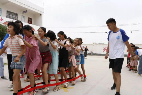 在素质拓展活动结束后,结合活动时的优异表现,社会实践团队成员带领小朋友们集中开展了以“团结协作”为主题的教育授课,帮助小朋友们在今后的学习生活中树立良好的团队意识以及热爱学习、热爱生活的个人品质。随后,团队成员结合自身专业特色开展了分散授课,包括爱国教育、礼仪教育、环保卫生教育、体育和音乐等课程。活动使农村学生开阔了视野,感受到了社会和国家的关爱。