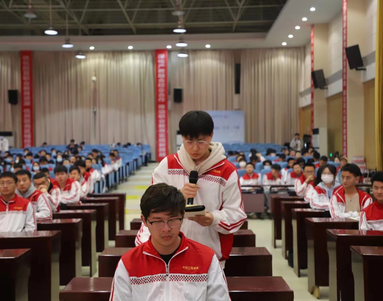水利工程学院学生代表曹龙娟发言表示:《榜样》这部影片给了我很深的感触。影片中每一位前辈都是我们学习的榜样,这部影片提醒我们,珍惜当下可以学习的时间,为了成为更好地自己要加倍努力。