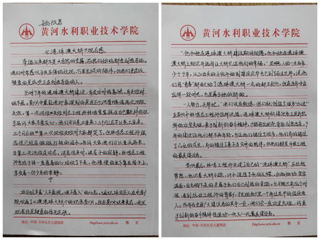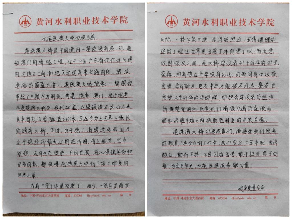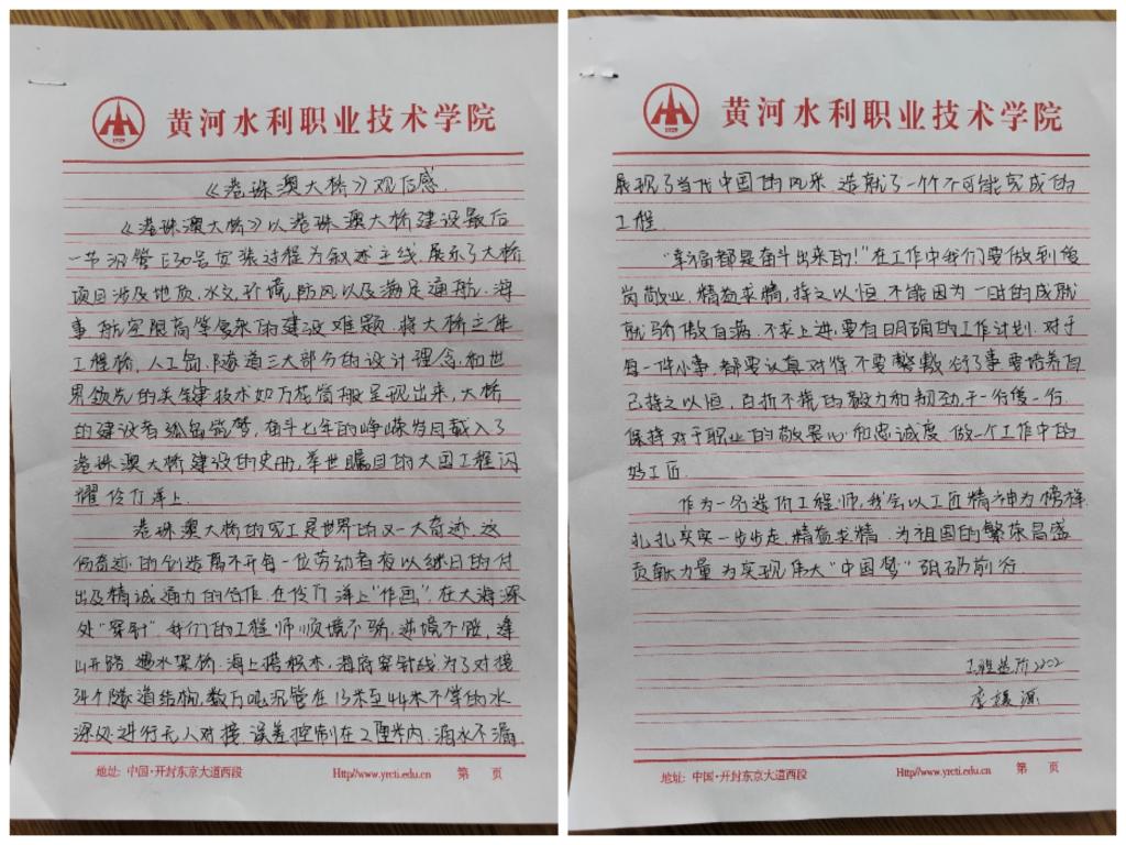 通过本次观影活动,同学们更加地体会到,“幸福都是奋斗出来的!”港珠澳大桥的建设是当下中华民族实现伟大复兴中国梦最生动、最感人的中国故事,在今后工作中我们要爱岗敬业、精益求精、持之以恒地去学习工程师们不畏困难、努力奋斗、开拓创新的精神,以百折不挠的毅力和韧劲,做一个工作中的好工匠,为实现中华民族伟大复兴而努力奋斗。