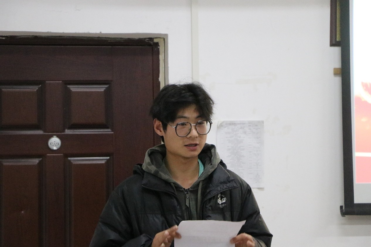 观看影片前,测绘工程学院分团委书记周涵向同学们推介影片,他介绍到:该影片展示了我们中国的文化与发展面貌,影片的内容整体呈现出一部自然景观与人文历史相结合的画面,每一帧都是美景,每一秒都是经典,同时本电影也与我们测绘专业息息相关,希望大家在观看影片的同时,能与我们所学的专业联系到一起,在以后的学习生涯中更加努力,回馈社会,为祖国的测绘事业增砖添瓦。