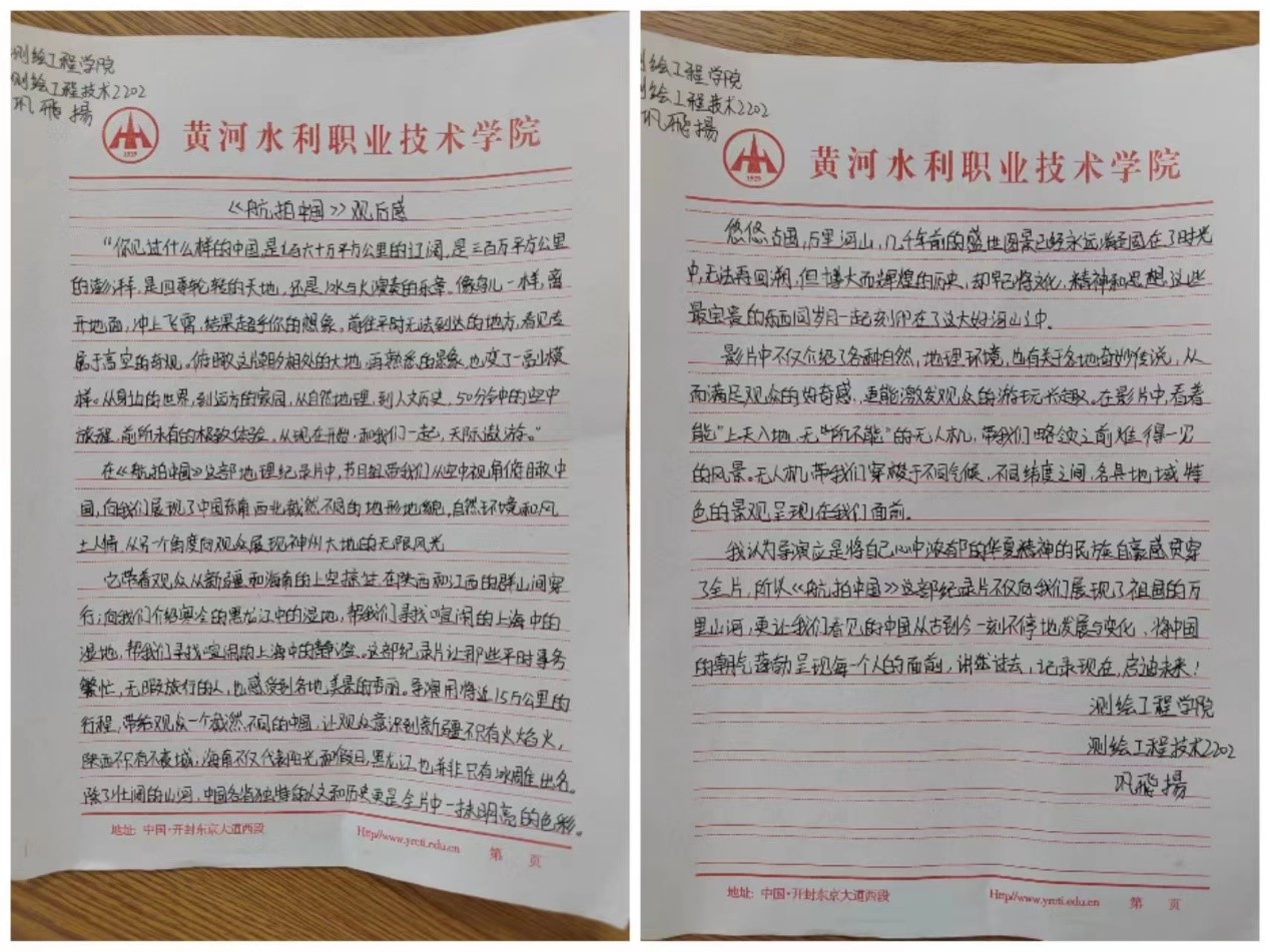 通过本次观影活动,我们感受到了河南各地美景的秀丽,博大而辉煌的历史,早已将文化、精神和思想这些最宝贵的东西同岁月一起刻印在了这大好河山之中。新时代的莘莘学子,应当前仆后继,投身到建设河南、建设祖国的伟业之中!