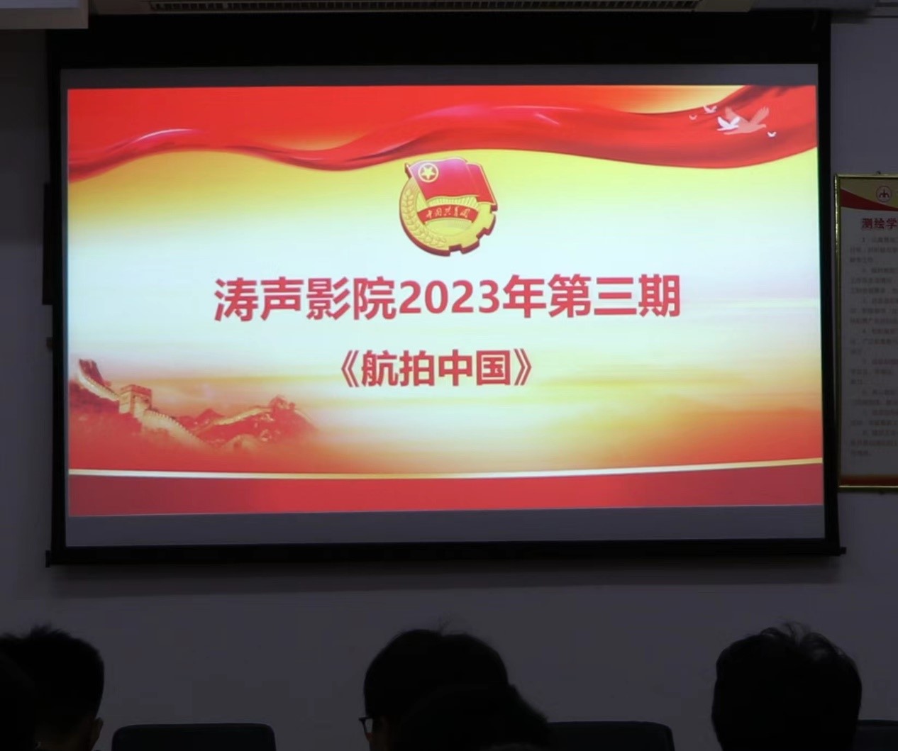 为深入学习贯彻党的二十大精神,贯彻落实习近平总书记关于青年工作的重要思想,用当代青年乐于接受的方式方法厚植爱国主义情怀,坚定广大青年学生爱国爱党的信念,测绘工程学院于2023年3月19日举办了2023年第三期“涛声影院”观影活动,本次观影内容为《航拍中国》。