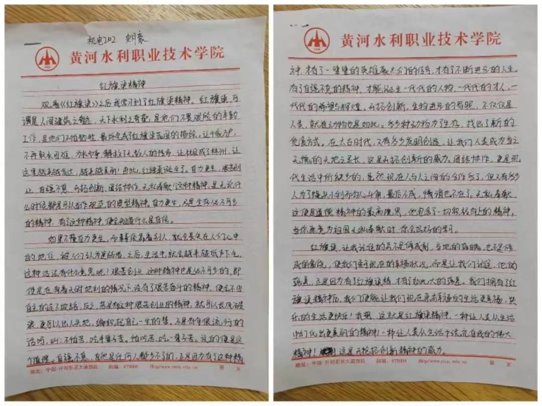 观影结束后,机械工程学院学生代表朱赵婷发言表示:当一块块祖宗牌位整齐地摆成一排,林县人民不停磕头的那一幕,深深触动了我的心。我明白,为了人民、依靠人民,是红旗渠精神的根本;敢想敢干、实事求是,是红旗渠精神的灵魂;自力更生、艰苦奋斗,是红旗渠精神的体现;团结协作、无私奉献是红旗渠精神的保证。