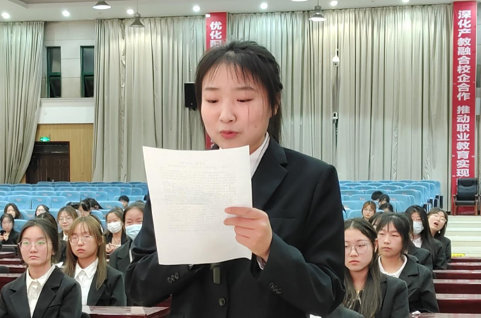 金融与会计学院学生代表贾一凡发言表示:“在成长的路上,可能没有那么的一帆风顺。我们会遇到挫折,会经历磨难,只要我相信蜕变,只要我依然坚持梦想,只要我不丢失责任与爱,我就是幸福的。”