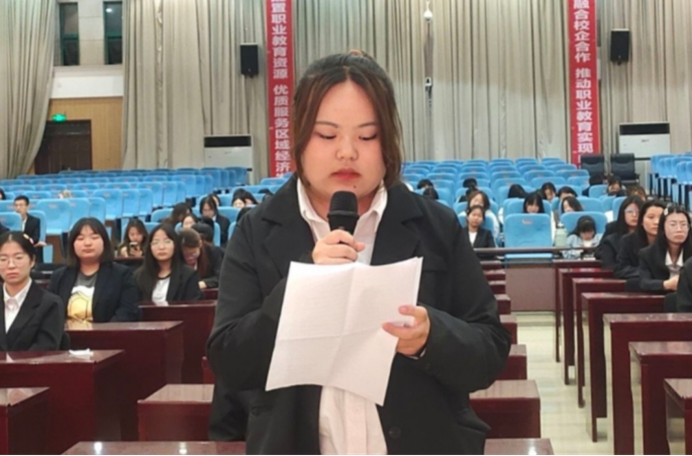 金融与会计学院学生代表刘寒梅发言表示:“成长的路上必然经历很多风雨,相信自己终有属于我的盛举,我不会因为磨难停住自己的脚步,坚持住就会拥有属于我的蓝图。任何人的成功都不是轻而易举就可以获得的。那个笨小孩在迷茫的黑夜中散发出青春的光芒,原来笨小孩也可以创造奇迹。”