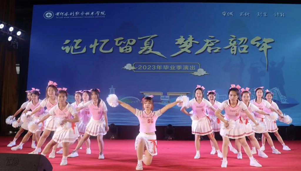 少年当自强,阳光折射下的校园,少年们奔波忙碌的身影,平凡而充实。由舞蹈啦啦操社团的刘晴雨、钱琳、李怡、刘歌唱等同学带来的《闪耀青春》,节奏动感,充满激情,充分展现出黄河水院学子朝气蓬勃的精神面貌。