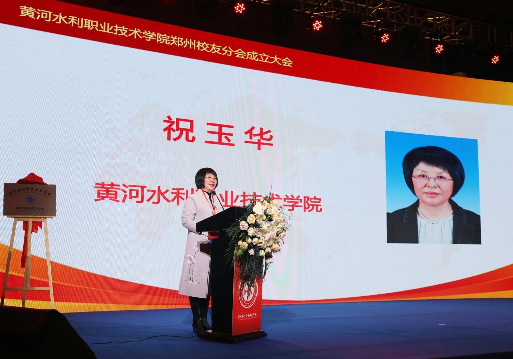 祝玉华讲话。她向郑州校友联络处的成立表示祝贺,她指出校友是母校最宝贵的财富,是学校事业发展最可信赖的力量,广大校友所取得的成就已经成为展示母校实力的重要窗口。她强调,当前,学校正处于以“双高校”建设为抓手,充分发挥示范引领作用,积极服务黄河流域生态保护和高质量发展国家战略的重要时期,广大校友要一如既往对母校给予关心、支持和帮助,不断推进合作,打造行业和学校深度合作的典范,进一步提升学校的社会影响力和美誉度,为地方经济和行业发展做出更大的贡献,在加快构建现代职业教育体系中做出黄河水院应有的贡献。她希望,郑州校友联络处要加强在顶层设计、机制建设等方面的探索,进一步凝聚校友力量、开发校友资源,在支持、关心母校发展,服务回馈校友等方面做出榜样,团结广大校友共同为国家、地方、母校的发展做出更大贡献。