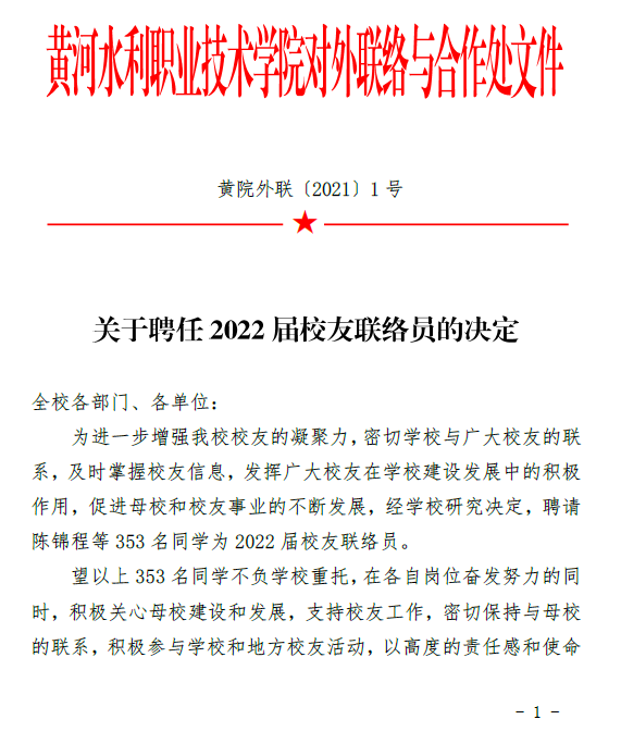 关于聘任2022届校友工作联络员的决定