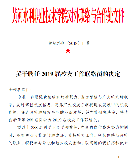 黄院外联〔2018〕1号 关于聘任2019届校友工作联络员的决定.pdf