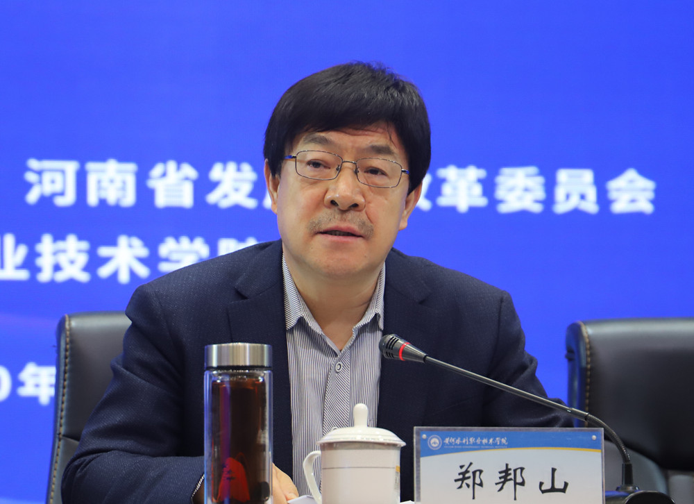 郑邦山讲话,他指出,“提质培优”行动计划的实施,标志着职业教育进入了提质培优、增值赋能的新阶段,必将带动我省职业教育迈入改革发展快车道。我省遴选54所院校在全国率先实施省级“双高工程”,标志着我省高职学校进入了“双高”建设时代。这既是落实“职业教育与普通教育是两种不同教育类型,具有同等重要地位”的制度设计,也是落实全省教育大会和《河南省职业教育改革实施方案》的重大举措。他从提高站位、深刻认识实施“双高工程”的重大意义,主动作为、准确把握“双高工程”的建设任务,强化保障、扎实推动“双高工程”取得实效等三方面就推动我省“双高工程”建设、推进职业教育发展提出具体要求。他指出,“双高工程”意在引领,是关系我省高等职业教育往何处走、办成什么样、发挥什么作用的大问题,必须提高站位、统一思想,深刻理解和把握实施“双高工程”是建设高质量教育体系重大举措、是支撑我省经济社会高质量发展时代要求、是提升我省高职学校办学水平有效途径的重大意义。