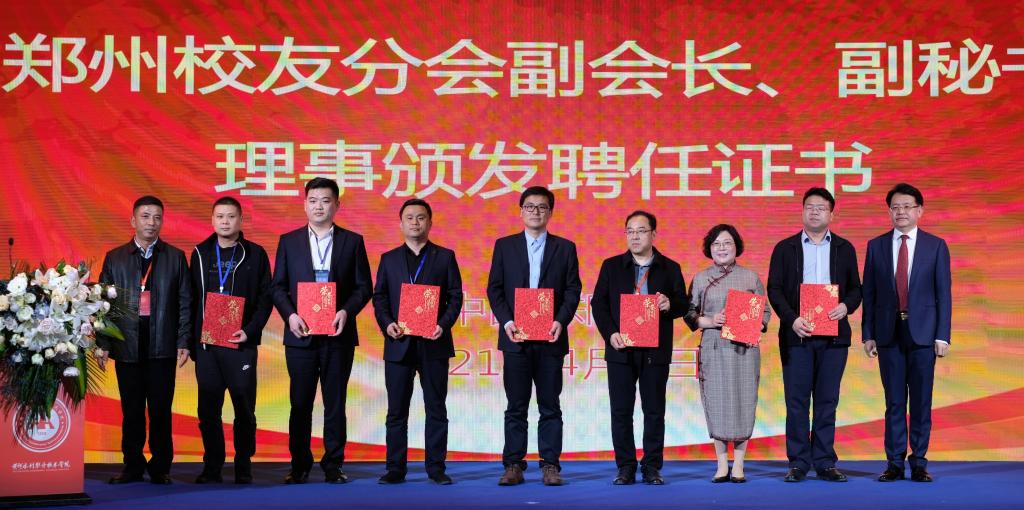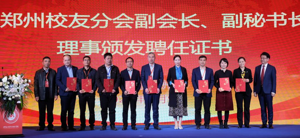 与会领导为郑州校友分会第一届理事会成员颁发聘任证书