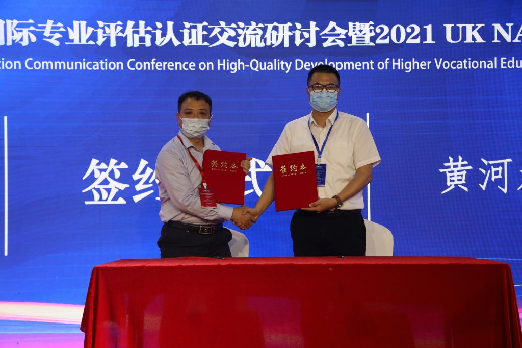 会议邀请职业教育领域中外权威专家就全球职业教育体系建设和实施基本情况,以及“双高计划”建设背景下中国职业院校建设与发展的国际化趋势做专题报告。会议期间,我校与英国国家学历学位评估认证中心签订专业国际评估认证合作协议书,并被其授予“中英职业教育教师培训基地”筹建单位。