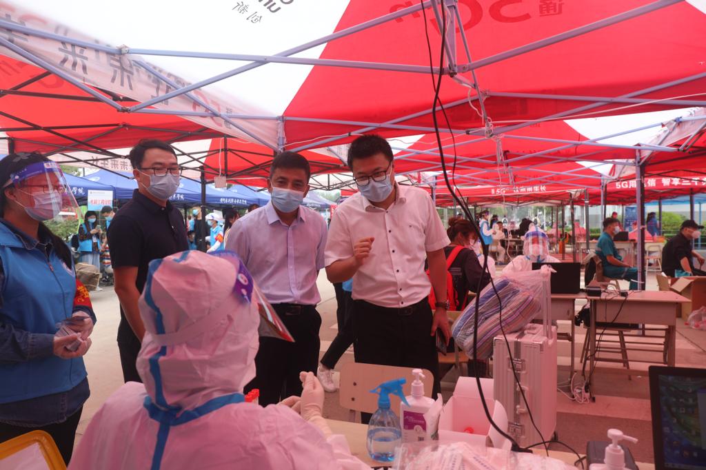 校领导一行仔细察看新生进校行李消杀、体温检测、身份查验、扫码验证、核酸检测、签到注册等流程,了解各站点实时情况,对一线工作人员进行了亲切慰问,并要求相关部门要提高站位、高度重视、落实责任,切实加强疫情防控措施,规范新生入学工作各环节流程,为新生提供优质保障,确保新生入学报到工作安全、圆满完成。
