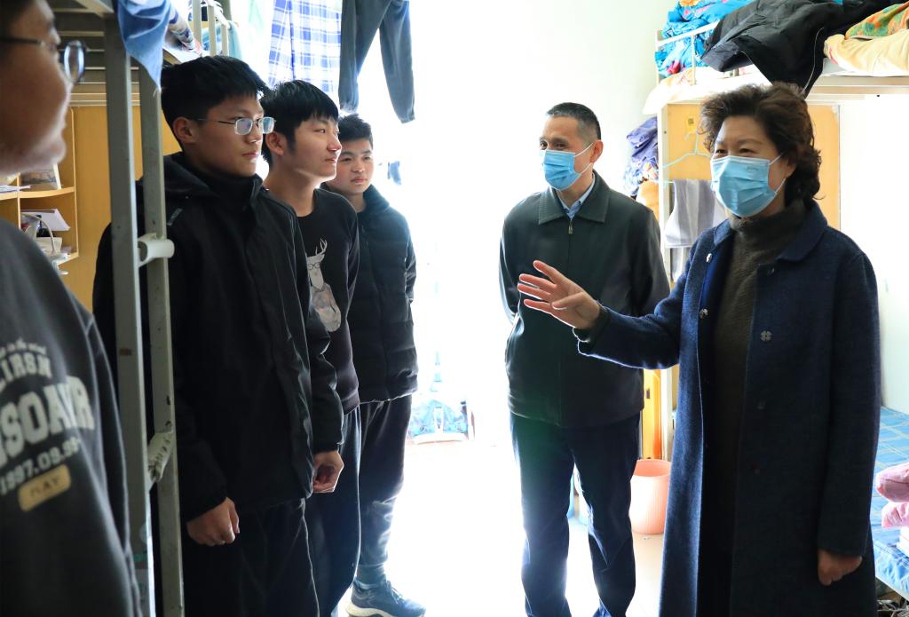 在学生宿舍区域,周保平察看了学生报到情况、学生宿舍安全设施与宿舍的环境情况,与已经返校的学生进行了沟通交流,叮嘱学生关注个人身体健康,保持健康愉悦的心情,尽快进入学习状态。深入到“一站式”学生社区党员服务中心时,她指出,要紧紧围绕立德树人根本任务,不断将“三全育人”推向纵深,将“一站式”学生社区要打造成为思想政治教育的高地、人文素养培育的园地、管理服务学生的基地、安全稳定维护的阵地、综合素质提升的营地,推动形成全员全过程全方位育人格局。她要求,相关部门要事无巨细的做好开学各项准备工作,确保学生“回家”即安心,确保开学第一课高质量进行,确保学生平安开学。