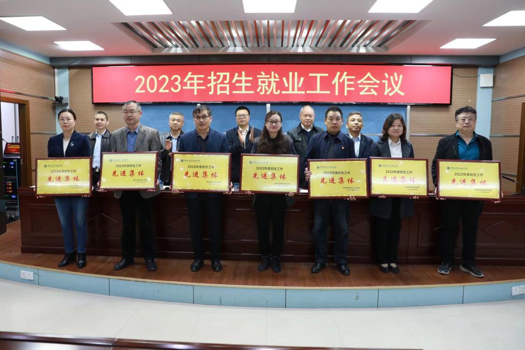 杨士恒宣读了《关于表彰2022年招生工作绩效考核先进集体和先进个人的决定》《关于表彰2022年毕业生就业工作绩效考核先进集体和先进个人的决定》。与会校领导为2022年招生就业工作先进集体和优秀个人代表颁奖。