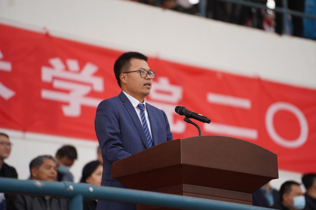 党委副书记、校长胡昊为运动会致开幕词。他指出,过去的一年,学校以习近平新时代中国特色社会主义思想为指导,在校党委的正确领导和全体师生的共同努力下,全校师生凝心聚力、锐意进取,谱写了学校发展的新篇章。获得“双高计划”中期绩效评价优秀,开始建设新校区,建设第三所海外大禹学院;1位教师荣获黄炎培职业教育杰出教师奖、1位教师荣获人社部授予“全国技术能手”的荣誉称号、3位教师斩获全国实验教学案例大赛一等奖,1个教师团队荣获第二批全国高校黄大年式教师团队;同学们奋进笃行,在各级各类竞赛中,共获得国家级团体一等奖18项、个人一等奖27项,省部级团体一等奖27项、个人一等奖39项。荣获金砖国家职业技能大赛全国一等奖1项、三等奖1项,并收获国际赛银牌。他强调,运动会是对学校体育工作、师生精神风貌的一次检阅,也是同学们张扬个性、展示风采的舞台。希望全校师生、运动员以饱满的激情,昂扬的斗志,勇于拼搏的信念,团结向上的精神投入到本届运动会中去,赛出风格,赛出水平;裁判员严格按规程裁判,忠于职守,秉公执法,公正裁决;体委以细致的工作为运动会做好服务,维护赛场纪律,保证赛场安全,让赛场成为加深交流、增进情感、凝聚人心的平台。