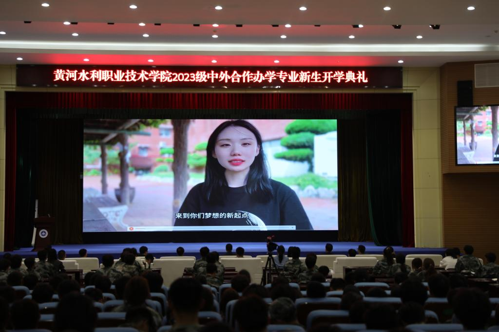 教师代表赵芳芳以自身的学习和工作经历勉励同学们心怀梦想,开阔视野,学好语言和专业,成为德才兼备、具有国际视野和创新精神的高素质人才。我校在韩国大邱大学交换学习的学生代表张纯通过视频分享了自己在黄河水院和大邱大学的学习生活,希望学弟学妹们提前规划大学生活,明确奋斗目标,勇于面对新的环境和挑战。新生代表陈乐乐发言,倡议2023级新生携手共进,做自己人生的掌舵者,承担起肩上的家国责任。