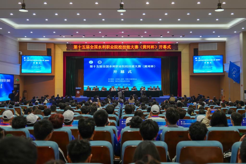 10月13日,第十五届全国水利职业院校技能大赛(黄河杯)在我校大学生活动中心开幕。水利部党组成员陈敏,河南省政府副省长宋争辉,水利部黄河水利委员会主任祖雷鸣,水利部人事司副司长王静,中国工程院院士王复明,水利部人才资源开发中心主任王新跃,河南省教育厅厅长毛杰,河南省水利厅厅长申季维,开封市市委书记高建军,市委副书记、市长李湘豫,河南省教育厅副厅长朱自锋,水利部黄河水利委员会人事局局长来建军,开封市副市长刘震,大赛总裁判长、中水北方勘测设计研究有限责任公司董事长、党委书记胡玉强,我校党委书记周保平,党委副书记、校长胡昊出席开幕式,来自38所参赛院校的领导、老师、学生以及裁判员、新闻媒体等900余人参加大赛开幕式。开幕式由中国水利教育协会会长张明俊主持。
