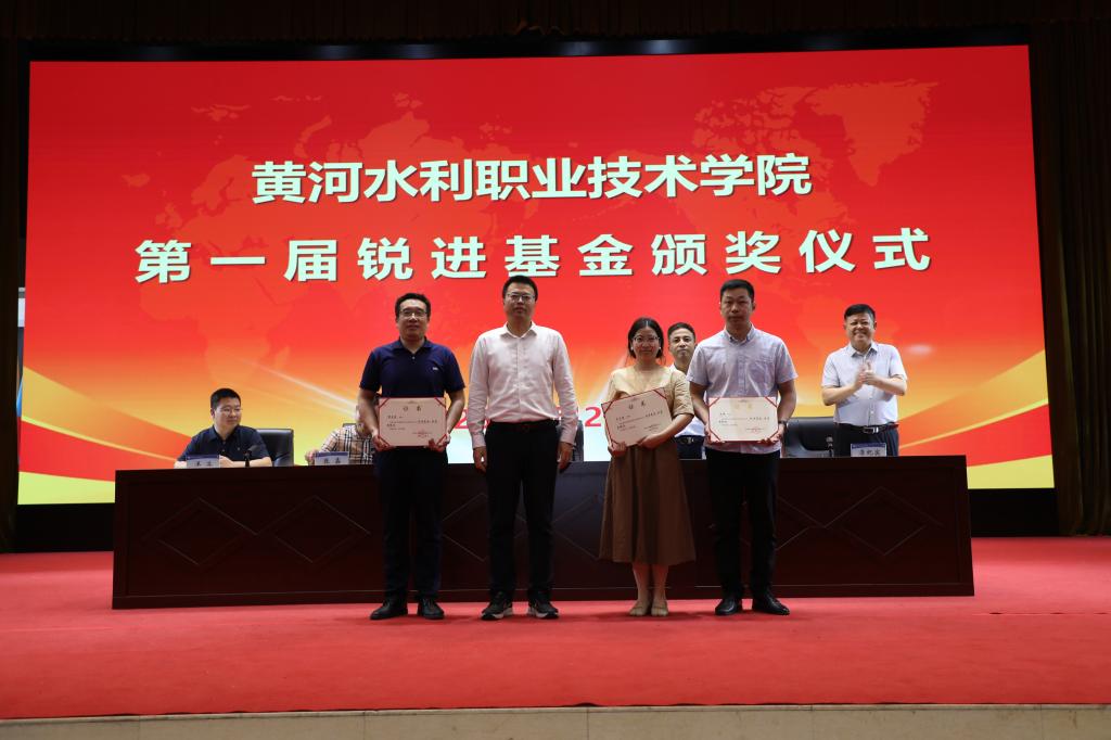 仪式上,李纪宾宣读《黄河水利职业技术学院校友会关于表彰第一届锐进基金获得者的决定》,与会领导共同为锐进基金获得者颁发证书。测绘工程学院李洪超老师、水利工程学院李嘉同学代表受表彰师生致感谢词。