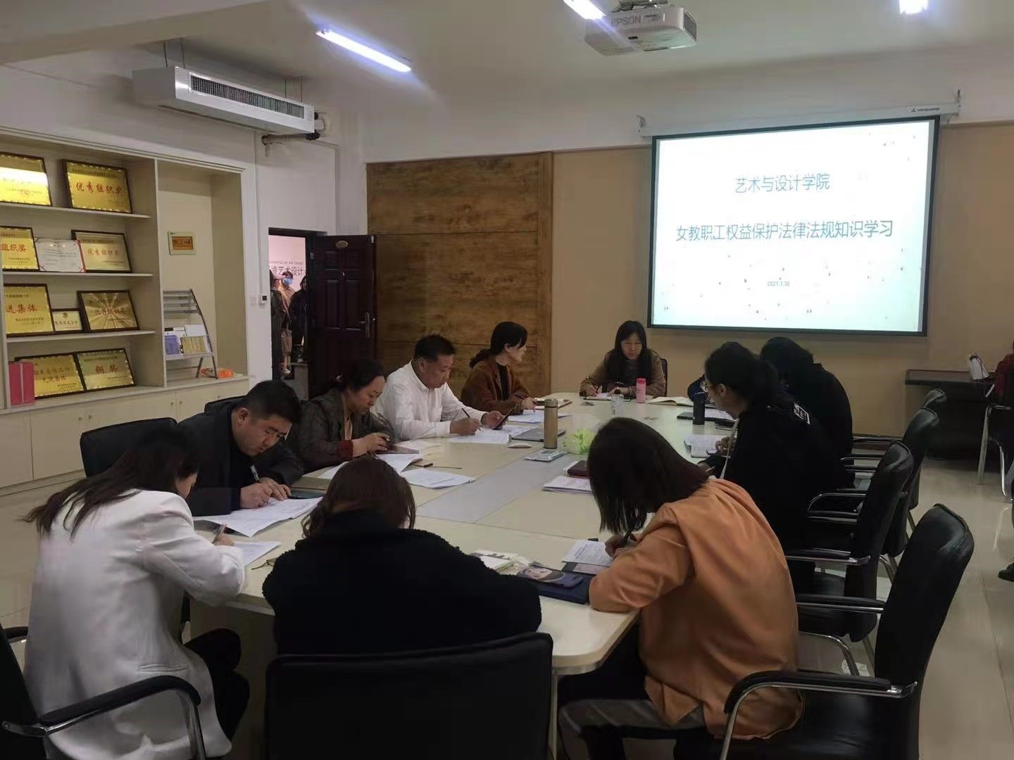 院工会主席鄢彬彬先带领大家学习相关法律法规,内容涉及《宪法》、《婚姻法》、《妇女权益保障法》等相关法律知识,学习完又进行了竞赛答题。最后女教职工还开展了别开生面的茶话会,会上大家畅所欲言,为学校的女教职工的待遇提出了很多建议,营造女教职工尊法学法守法用法氛围,提升女教职工维权意识,保障女教职工合法权益,建设和谐文明校园。