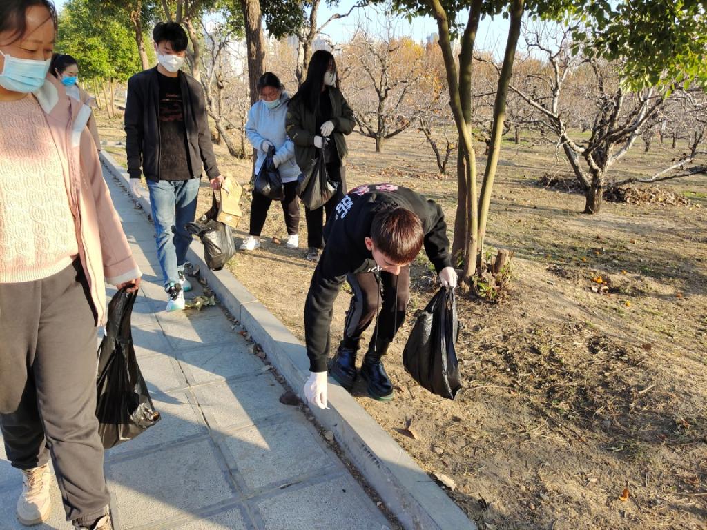 下午3点半,师生们准时到达。艺术与设计学院院长华雷,书记耿亚杰,副院长鄢彬彬,副书记赵巍亲自上阵,带领大家一起动手对梨园服务区进行细致地打扫。师生们拿着提前准备好的劳动工具,把梨园中散落的垃圾一一捡起并收集处理,清扫效果显著。大家干得热火朝天,阳光下的梨园又恢复了整洁,映衬出校园冬日的美景。