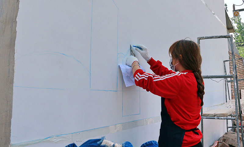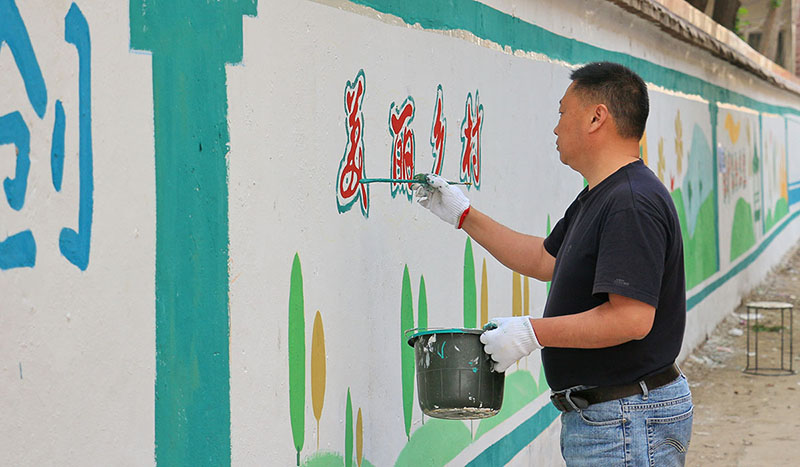 村庄是农民生产生活的聚集地,是生存和发展的基础条件。改善村容村貌,营造良好的人居环境,是作为新时期重要的民生问题和新农村建设的重要目标。该乡领导为了实现美化乡村的目标,特地到学校求援。艺术系领导高度重视,专门召开会议研究,选拔优秀学生和老师组成团队,进行了精心准备。4月21日全体师生早上7点30从学校出发,九点到达目的地,师生迅速投入工作。为了能按时完成任务,师生们吃完中午饭不休息,继续坚持工作。他们不怕苦、不怕累、不怕晒,发扬连续作战的精神,克服各种不利因素,用自已的画笔精心装点美丽乡村,两天共完成墙体画53幅,长度550多米,虽然身体很疲惫,但是看到自己的作品美化了农村的环境,心里还是很高兴的。这两天的工作任务也得到了乡领导和广大村民的高度评价。