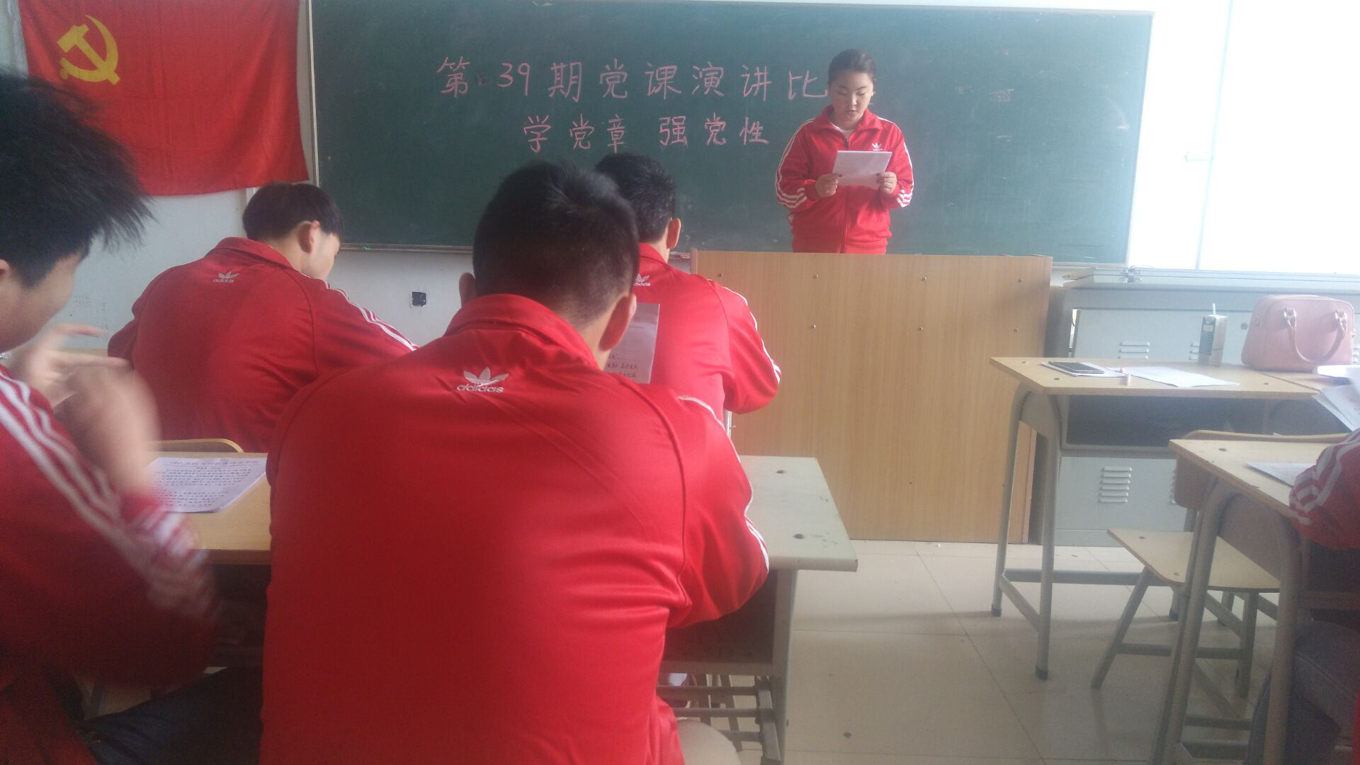 2016年4月23日星期六十点,艺术系组织部组织部部长韩杏汶、副部长朱柯瑞组织第39期积极分子举行了以“学党章 强党性”为主题的演讲比赛。