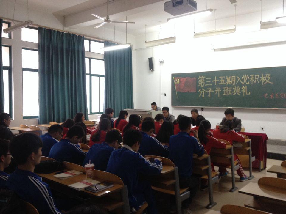 2014年4月20日上午8点,黄河水利职业技术学院艺术系第35期入党积极分子开班典礼在教室5309隆重召开。出席此次活动的有:艺术系党总支书记吕来、分团委书记赵巍、大二辅导员倪磊及第35期全体入党的积极分子。