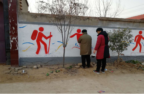 为了完成10个墙面近200平方米宣传标语和宣传画的绘制,20多名师生直至夕阳西下,仍然不惧严寒、挑灯奋战,敬业认真的态度赢得了郭景村村民的一致赞誉。主题文化墙绘活动的开展,不但丰富了村民的精神文化生活,锻炼了大学生党员、入党积极分子的社会服务能力,也推进了黄河水院精准扶贫工作的开展。