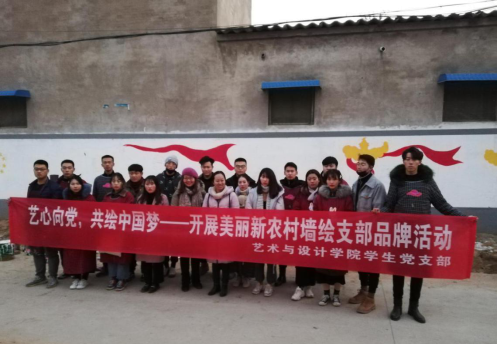 为深入学习贯彻习近平新时代中国特色社会主义思想和党的十九大精神,全面落实《国家乡村振兴战略规划(2018-2022)》,充分发挥党支部的战斗堡垒作用,建设品牌活动,培养大学生党员和入党积极分子社会责任感、使命感和实践能力,艺术与设计学院党总支学生党支部组织“艺心向党、共绘中国梦”美丽新农村墙绘服务队,于2018年12月14日赴刘店乡郭景村进行墙体标语、宣传画绘制活动,努力建设农村新形象,助力精准脱贫攻坚战。