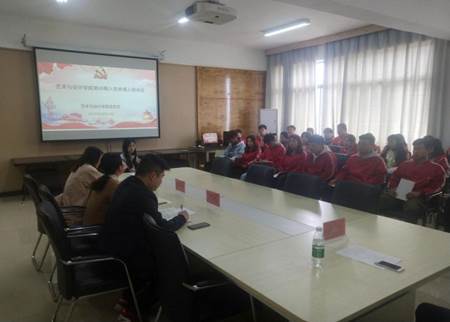 2019年4月11日上午10点,我院在SY5616会议室举办艺术与设计学院入党申请人培训会。艺术与设计学院党总支书记耿亚杰、党总支副书记赵巍、分团委负责人张嫚及17级辅导员李辰、杜雨老师参加了本次培训会。