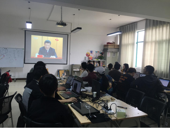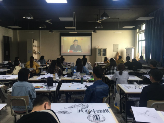 2019年4月30日上午10:30,纪念五四运动100周年大会在北京举行,中共中央总书记、国家主席、中央军委主席习近平出席大会并发表重要讲话。艺术与设计学院党总支组织师生观看直播,部分教师利用课堂条件,让青年学子在教室聆听习近平总书记对广大青年的寄语,让思政课走进课堂。