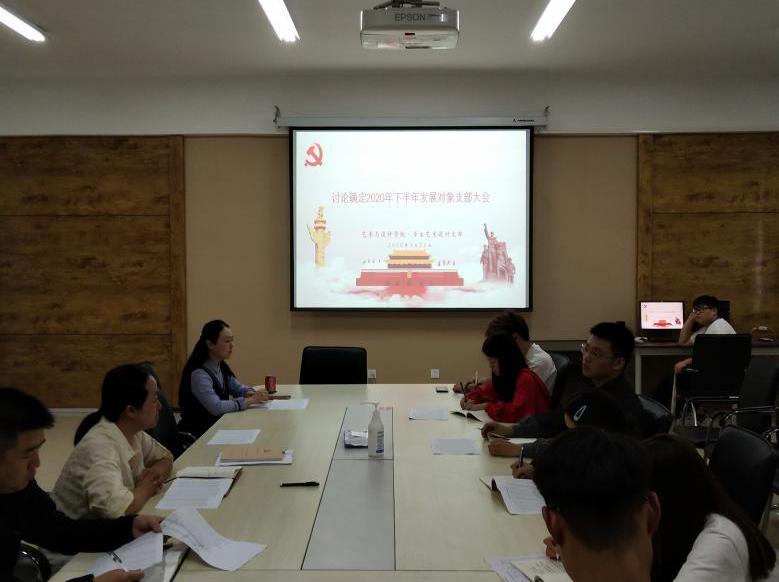 9月22日下午4点,艺术与设计学院学生艺术设计支部在SY5616召开党员大会,讨论确定2020年下半年发展对象名单。院党总支书记耿亚杰,党总支副书记赵巍,学生艺术设计支部在校党员参加本次大会。会议由支部书记张嫚主持。