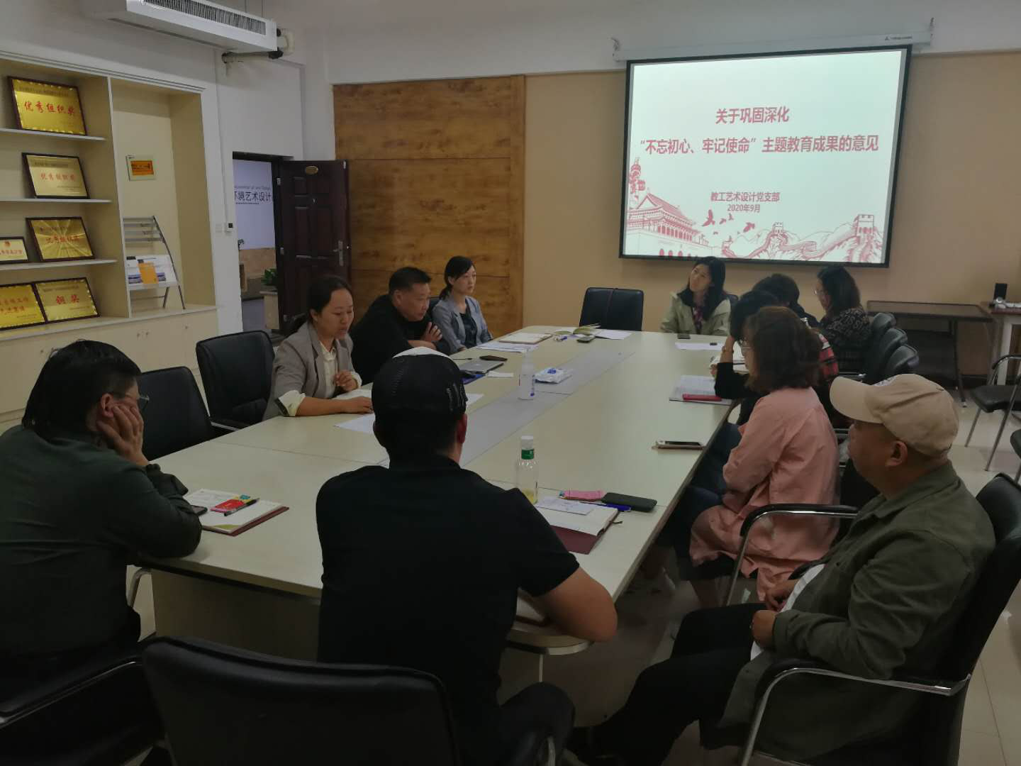 2020年9月29日下午,教工艺术设计党支部组织学习《关于巩固深化“不忘初心、牢记使命”主题教育成果的意见》,教工艺术设计党支部全体党员列席参加。