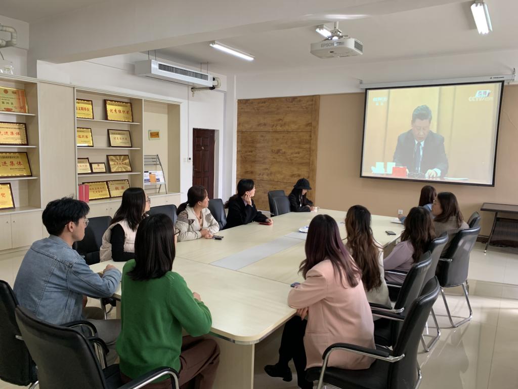 图一:学院教师观看《大会》