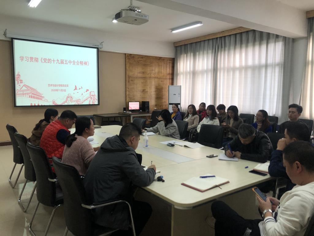 11月3日下午,艺术与设计学院党总支组织全体教职工在院会议室SY5616集中学习党的十九届五中全会精神,院党总支书记耿亚杰领学。