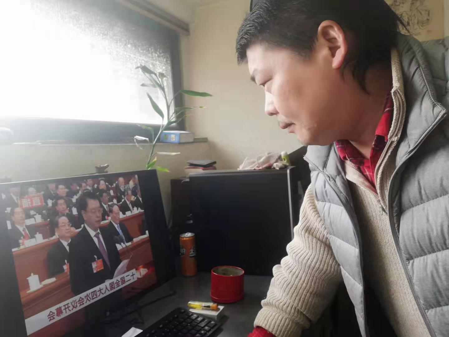 图一:学院行政人员集中观看直播