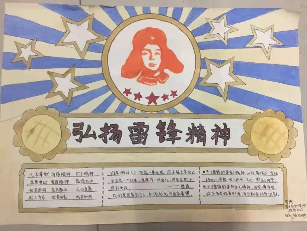 雷锋精神是我们中华民族宝贵的精神财富。四十多年来,它激励着一代又一代的青少年健康成长,促进了社会文明的进步,社会风气的好转。随着3月份“雷锋月”的到来,艺术与设计学院一年一度“学雷锋”海报设计大赛又拉开了帷幕。艺术与设计学院从青年大学生思想实际出发,切实解决好团员青年世界观、人生观和价值观方面的问题,结合专业特举办本次活动。让雷锋精神透过艺术作品在校园内进行传播,播下乐于奉献乐于助人的种子,让雷锋精神吹遍校园每一个角落。