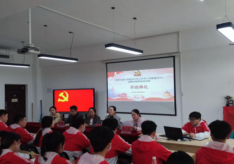 4月15日上午11点,艺术与设计学院学生艺术设计支部在实训楼5610教室举行2021年上半年发展对象及入党积极分子教育培训班开班典礼。艺术与设计学院党总支书记耿亚杰、党总支副书记赵巍、学生艺术设计支部委员及本期发展对象和入党积极分子参加本次开班典礼。开班典礼由学生艺术设计支部书记张嫚主持。