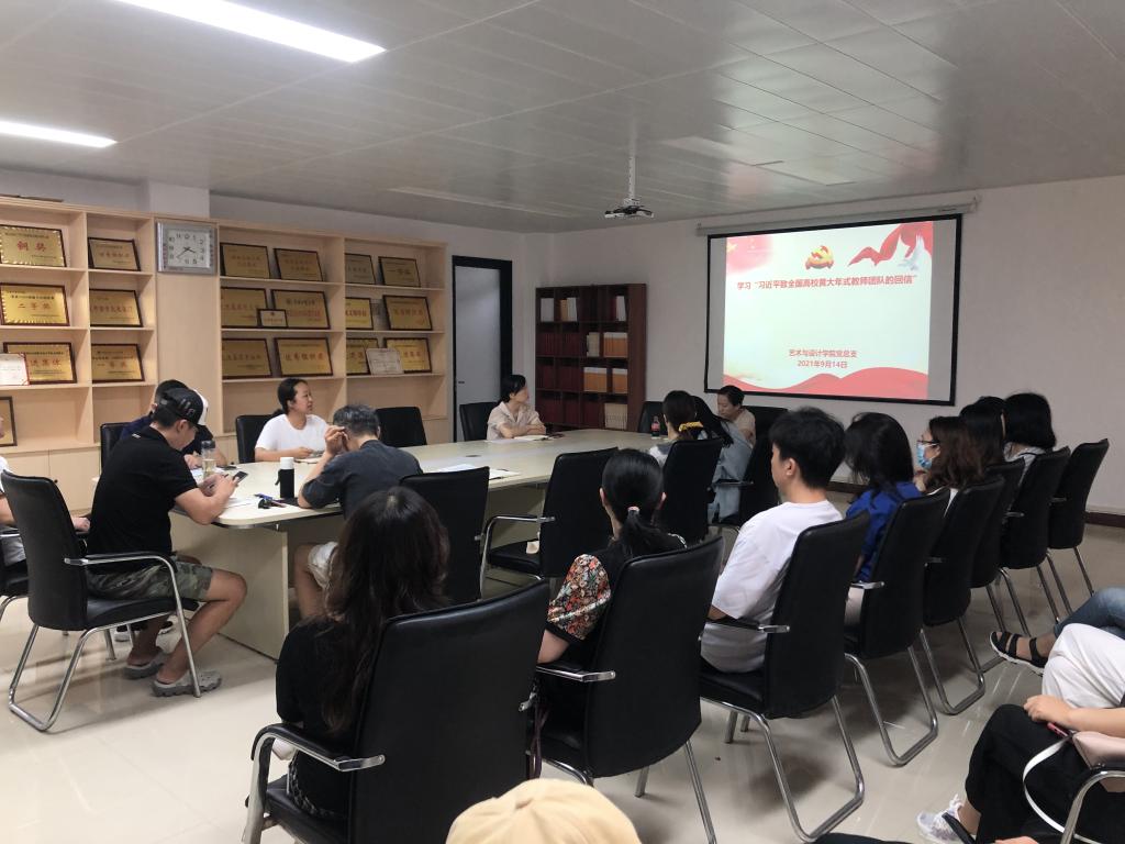 9月14日下午,艺术与设计学院党总支组织全体教师开展政治理论学习,学习贯彻“习近平致全国高校黄大年式教师团队的回信”精神,传达校领导在学校新学年工作会议上的讲话要求。