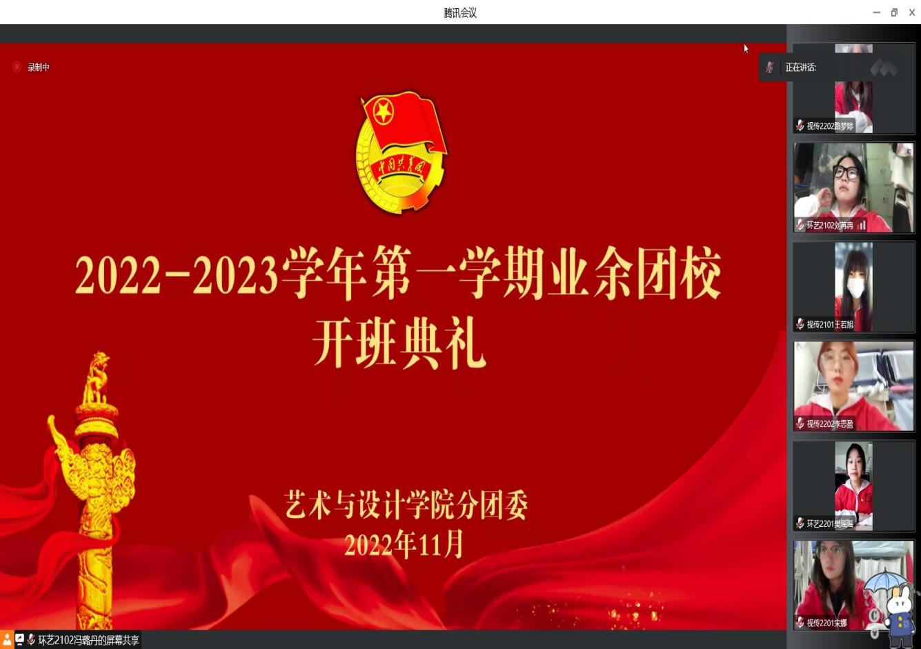 为了做好团组织发展工作,增强共青团组织的吸引力和凝聚力,为学校建设凝聚青春活力,努力培育社会主义事业的接班人。11月20日,艺术与设计学院分团委举办2022—2023学年第一学期线上业余团校开班典礼。本次会议由学生干部王利松主持,党总支副书记赵巍、分团委负责人高蕊以及30名学生参加。