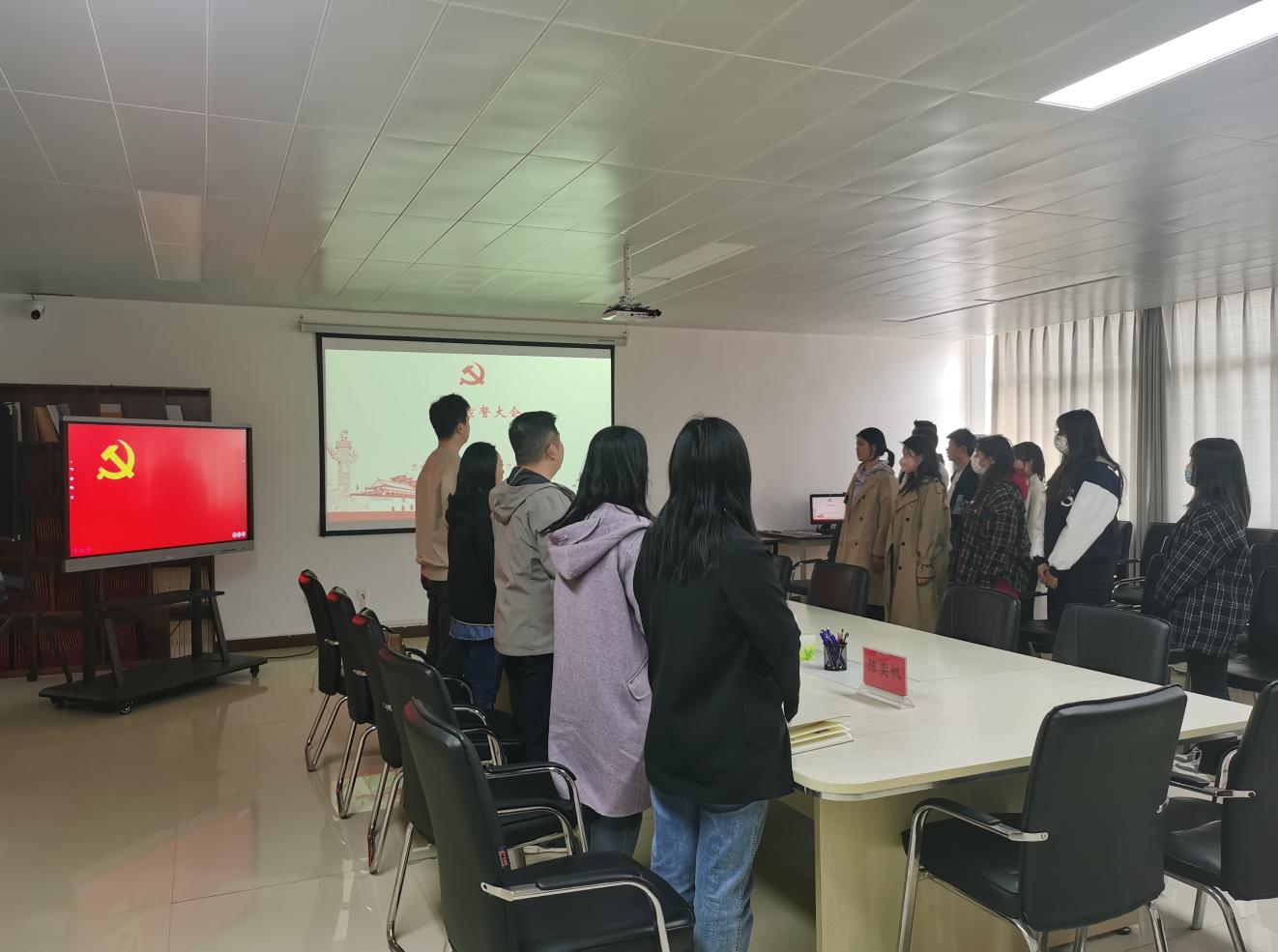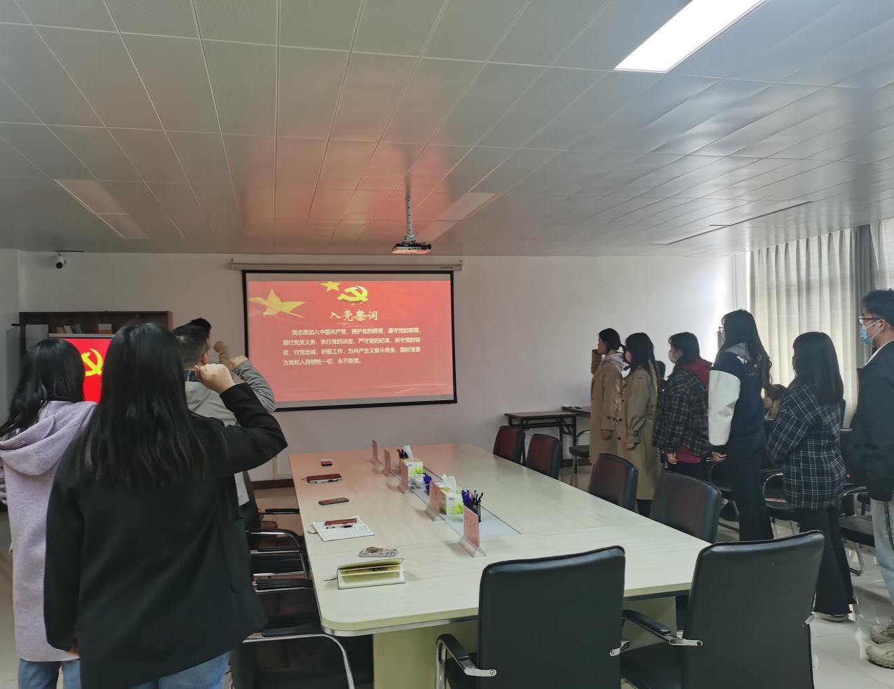 本次宣誓大会严格按照会议流程举行,学生艺术设计支部组织委员倪磊带领预备党员赵倩倩等六名同志进行了庄严宣誓。预备党员赵倩倩代表预备党员进行了表态发言。党总支副书记赵巍向预备党员表示祝贺,希望大家以党员的身份严格要求自己,不忘初心,牢记使命。